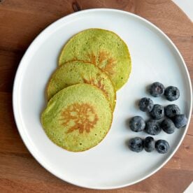 These spinach pancakes are one of the only things I know my kids will eat for breakfast! There are super healthy and a pretty green color that your toddler will love! They only have 4 ingredients and are perfect for kids. I hope you love them as much as I do!