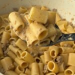 Add the cooked rigatoni to the sauce and mix until evenly coated.